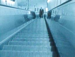 Ein Büroangestellter kommt nach Feierabend müde aus einer U-Bahn. Während er von Passanten überholt wird, nickt er kurz auf der langen Rolltreppe ein. Er wacht auf und merkt, dass er sich überhaupt nicht von der Stelle bewegt hat! Mit aller Kraft versucht er, die Treppe hinaufzulaufen, doch als er endlich oben ankommt, landet er in der nächsten Sekunde wieder am Anfang der Rolltreppe. Wieder und wieder versucht er sein Glück, doch die Treppe hält ihn in einer Schleife gefangen. Erst als er erschöpft aufgibt lässt ihn die Treppe gehen. Der Mann rappelt sich mühsam auf, schleppt sich einige Meter weiter um eine Ecke – doch da wartet schon die nächste Rolltreppe auf ihn!